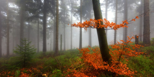 Když jsou podmínky, je podzimní atmosféra v našich lesích parádní. Fotografie pořízená v lese pod Ztracenými kameny v Hrubém Jeseníku.