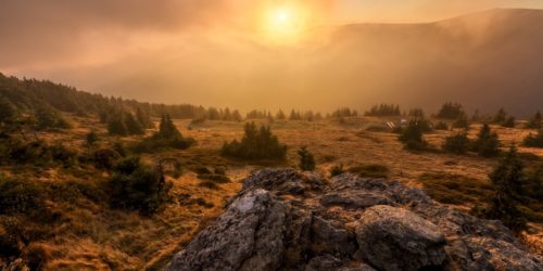 Těsně před východem ve společnosti maxipsa Fíka na Červené hoře.